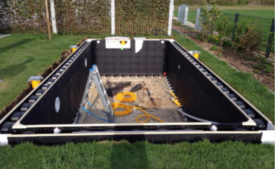 Lo scavo da realizzare è praticamente identico alla superficie della piscina, i risparmi nei costi di realizzazione dello scavo e del successivo interro sono del 40% circa rispetto a altri prodotti. La possibilità, unica nel suo genere, di lavorare direttamente contro terra o strutture esistenti permette di migliorare l’aspetto estetico finale.